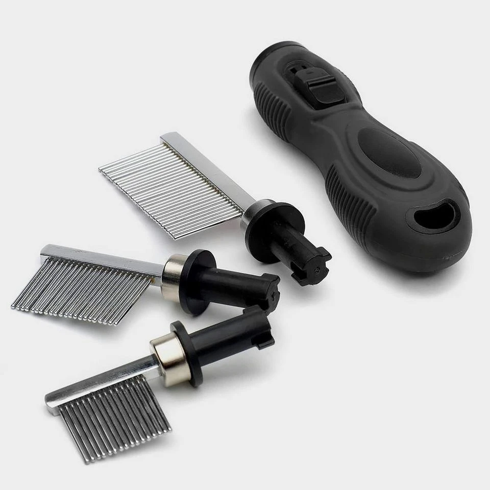 - Includes ergonomic comb handle and 3 comb heads